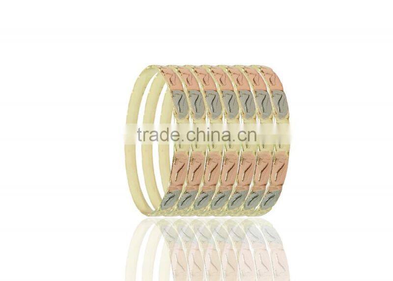 14 kt Gold Plated Three Tone Set of 7 Bangle Bracelet