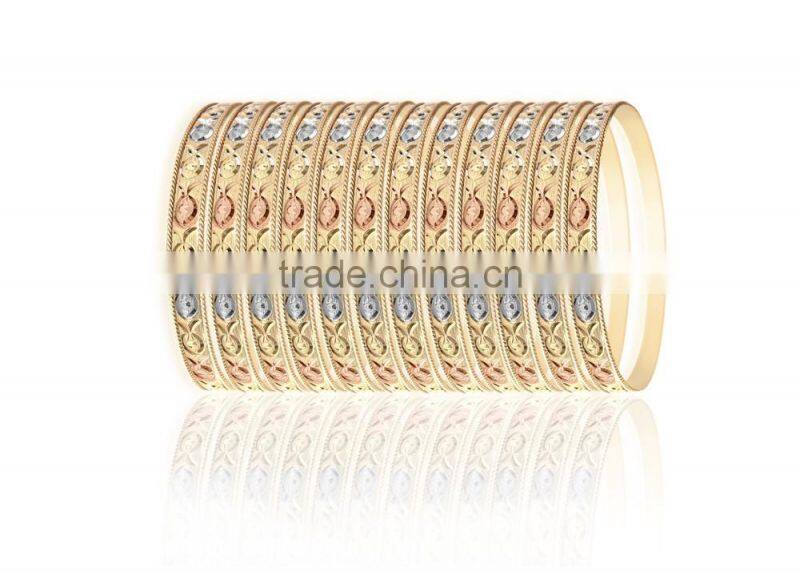 Fancy Diamond cut 6 MM Three Tone Plated Veni Bangles