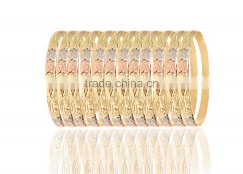New Arrival 6 MM Three Color Plated Diamond Cut Bangles