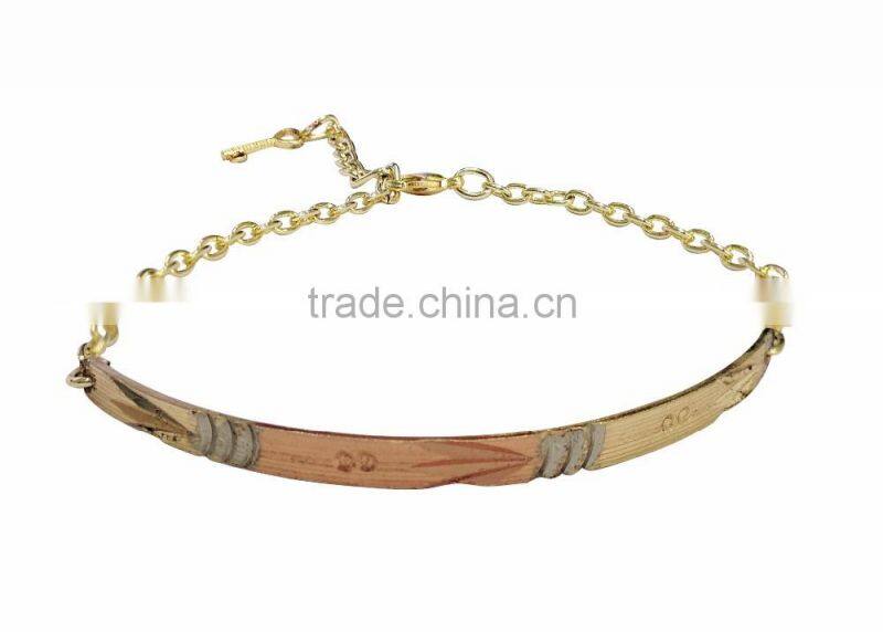 Imitation Artificial 18kt Three Tone Plated Bangle Bracelet With Extension Chain
