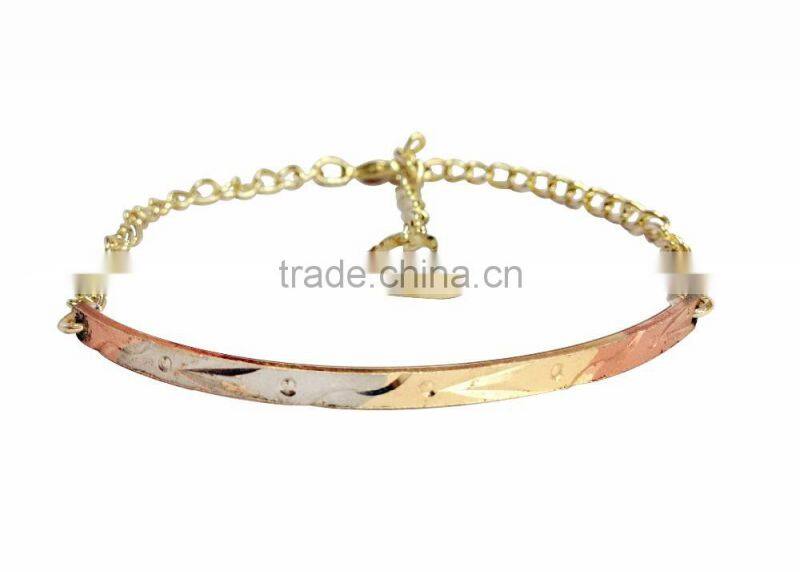 Imitation Artificial 18kt Three Tone Plated Bangle Bracelet With Extension Chain