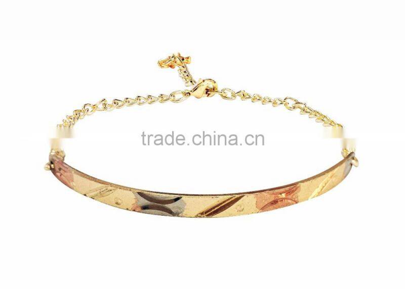 Three Tone Plated Bangle Bracelet With Extension Link Chain