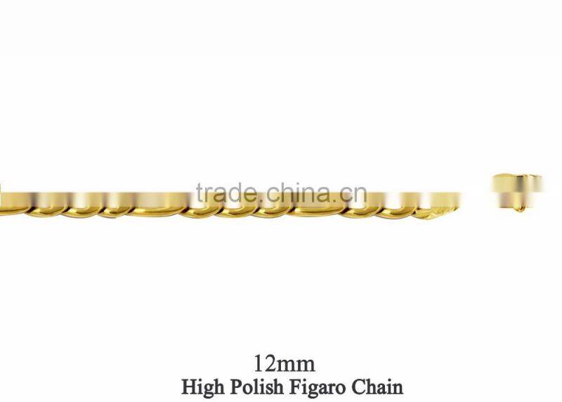 12 MM Gold Plated 6 Facet Figaro Chain Necklace