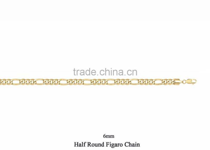 6 MM Gold Plated 6 Facet Figaro Chain Necklace