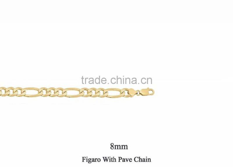 8 MM Gold Plated Figaro With Pave Chain