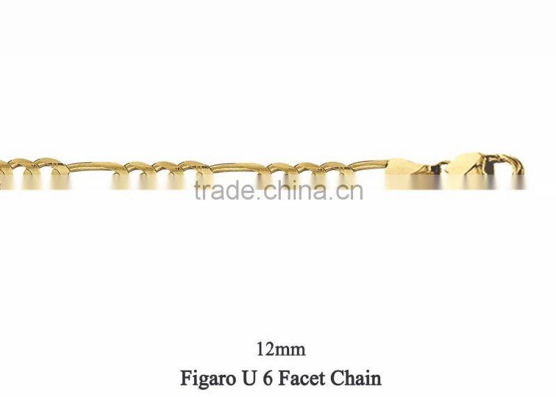 12 MM Gold Plated 6 Facet Figaro Chain Necklace