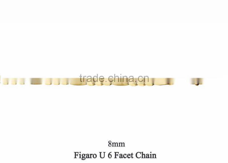 Gold Plated 8 MM Figaro U 6 Facet Chain Necklace