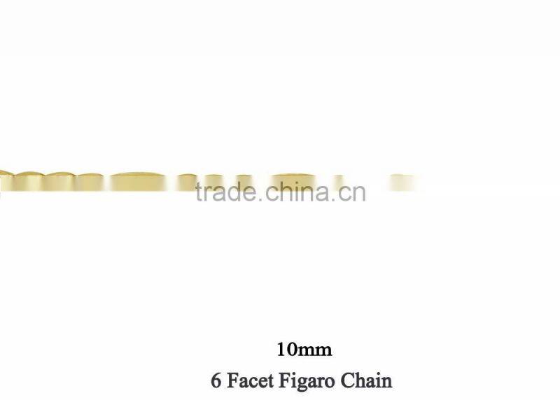Gold Plated 10 MM 6 Facet Figaro Chain Necklace