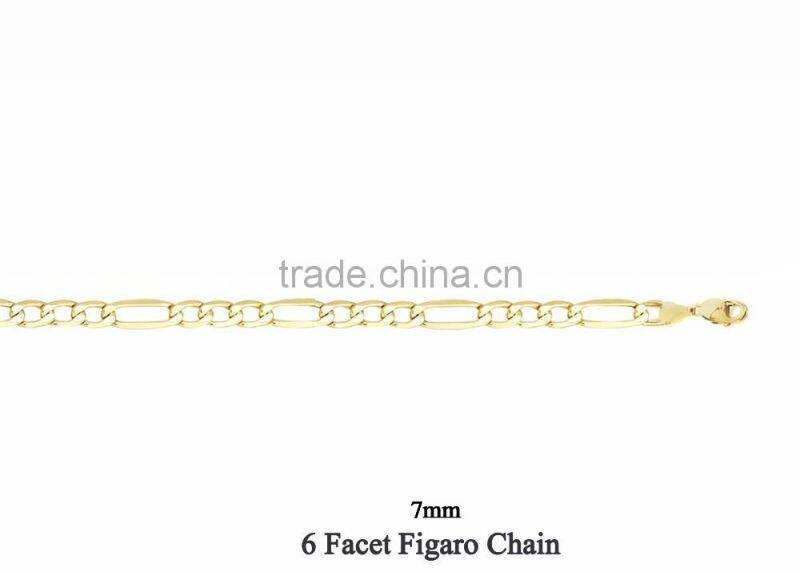 7 MM Gold Plated 6 Facet Figaro Chain Necklace