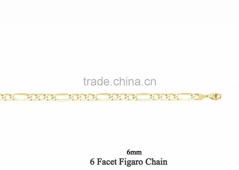 6 MM Gold Plated 6 Facet Figaro Chain Necklace