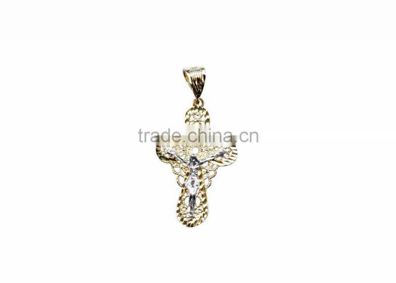 Two Tone Plated Filigree Crucifix Cross Pendant