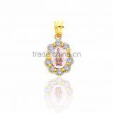 Three Tone Plated Mother Mary Charm Pendant With Gemstone