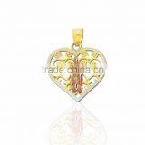 Two Tone Plated Heart Filigree Mother Mary Pendant