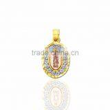 14kt Three Tone Plated Mother Mary Pendant With cz