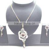 Designer Silver Plated CZ Studded With Color Stone Pendantset