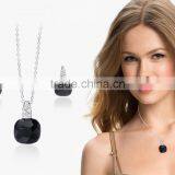 925 Sterling Silver Onyx Princesscut With CZ Studded Pendantset