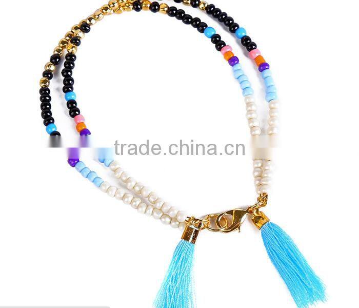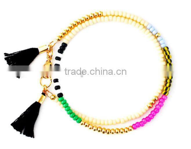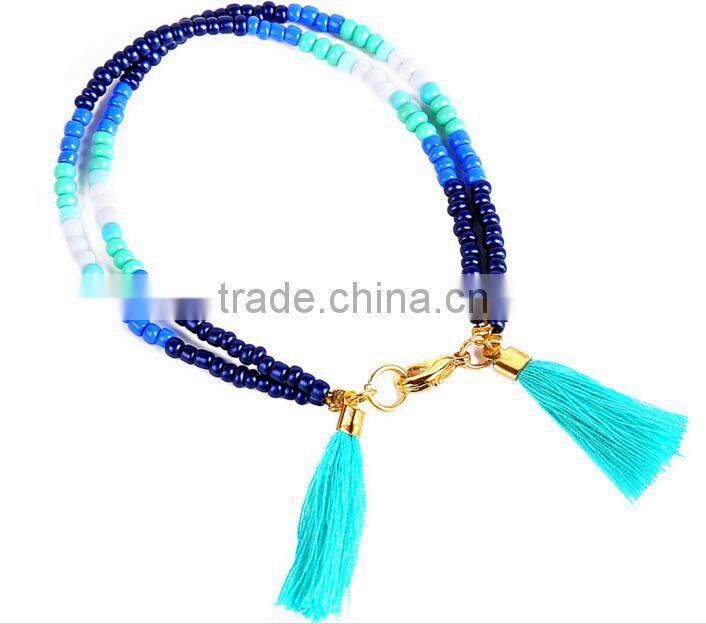Fashion Japan Seed Beads Bracelet Double Layer Pendant With Tassel Long Chain