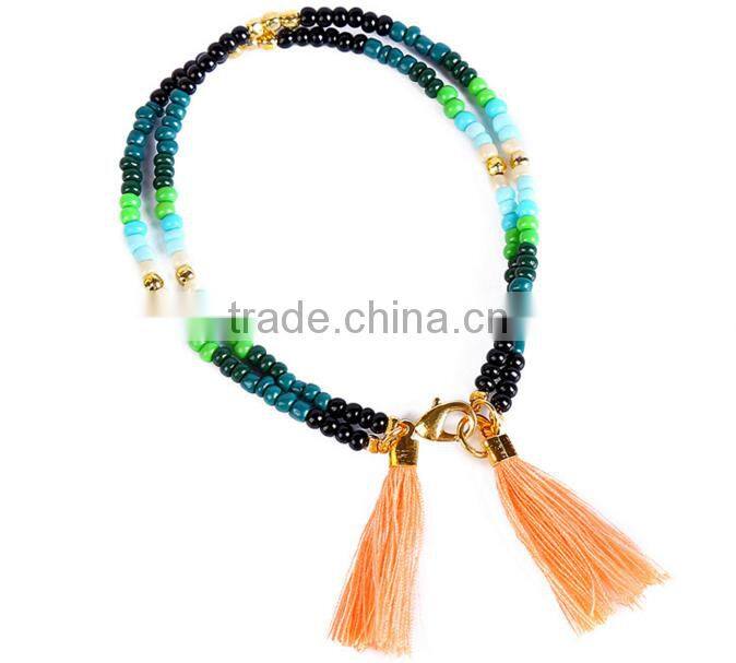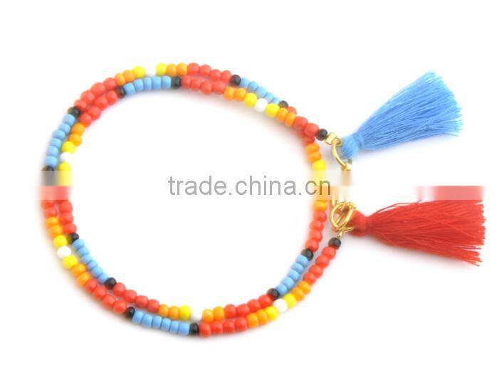 Colorful Seed Bead Bracelet Long Choker Friendship Gift Silk Tassel Bracelet