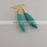 High Quality Turquoise Stone Earrings, Gold Wried Earring, Natural Stone Dangle Earring Jewelry