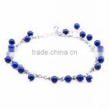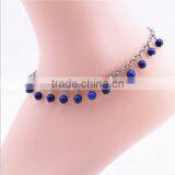 Pure Handmade Lapis Beads Charm Anklets Diy Lapis Charm Link Chain Anklet Bracelet for Women