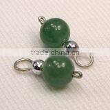 Green Aventurine Stone Silver Bead Charms, Stone Bead Dangles, Jewelry Making Charm 4 Green & Silver Charms