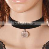 Custom Own Logo Charm Wide Velvet Necklace Big Wide Black Velvet Leather Necklace for Her Gifts 2017
