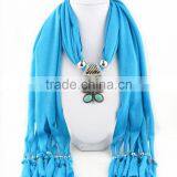 Cheap Acrylic Turquoise Pendant Jewelry Scarves Women Style Long Wrap Scarves 2016 Pendant Scarves
