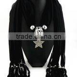 Mix Fashion Alloy Charm Pendant Polyester Scarves Custom Long Jewelry Scarves Shawls Cheap Pendant Scarves