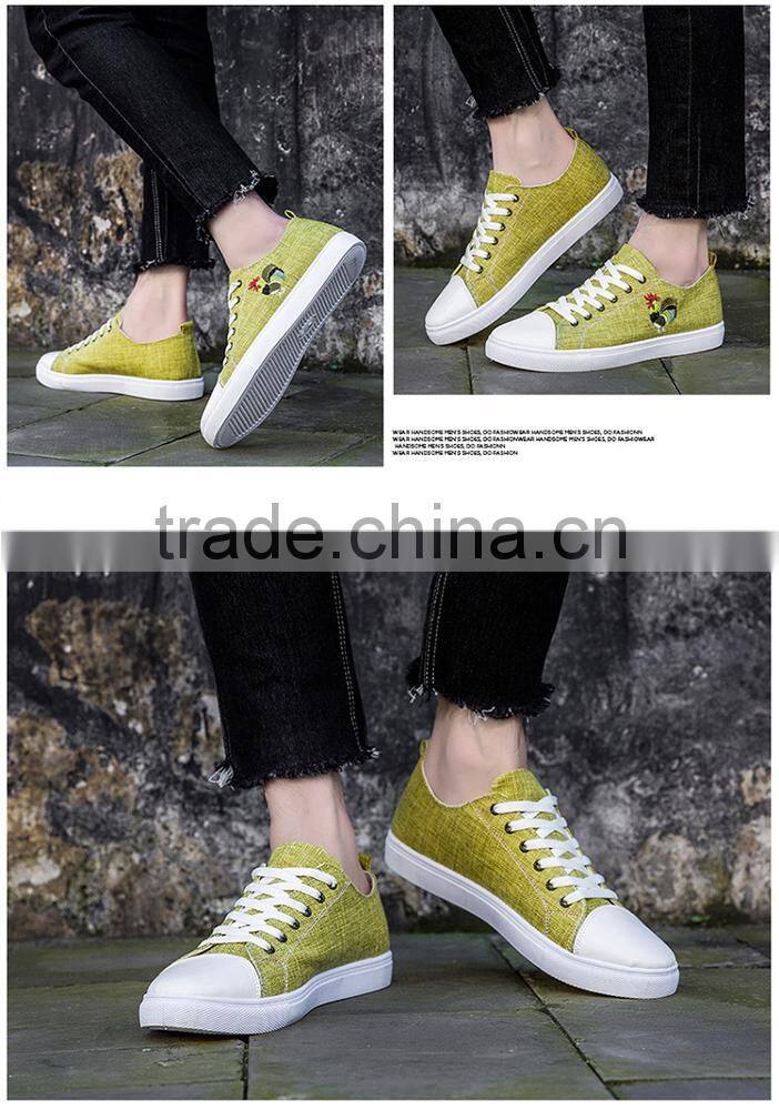 Lace-up Man's Rooster Embroidery Breathable Casual Bulk Latest Canvas Shoes