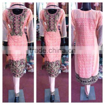 Fabric commonly using crinkle chiffon, jamawar , shmooz, raw silk, bnarsi Lenen or whatever as per customer demand