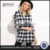 Check Plaid Drop Shoulder Shirt Black and White Cotton Blend Long Sleeve Casual Button Women Shirt