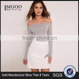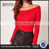 MGOO High Quality Long Sleeves Bardot Bodysuits Slash Neck Cold Shoulder Tops Women Tops Rib