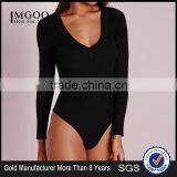 MGOO New Fashion Deep Plunge Bodysuit Black Custom Designs 95% Polyester 5% Spandex Plain Basic Fashion Item