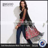 Women Long Sleeve Fashion Beachwear See Through Chiffon Long Fringe Mesh Kimono With Floral Print