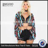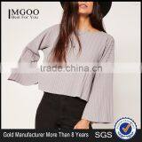 MGOO Custom Made 2017 Fashion Tops Sheer Neck Long Sleeves T-shirt Cotton Spandex Flare Sleeves Manufacturer