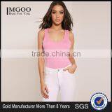 MGOO Elegant 95% Cotton 5% Spandex Bodysuits Ribbed Choker Neck Pink Tops Sleeveless Zip Up Tops