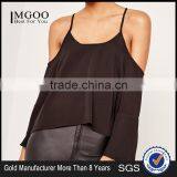 MGOO 2017 Chiffon Cold Shoulder Blouse Long Sleeves Shirts Blouses Polyester Spandex Black Loose Style