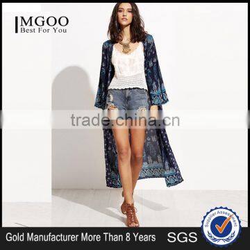 | Custom Print Own Design Wholsale Bulk Women Fashion Beachwear Longline Navy Paisley Print Chiffon Kimono | |