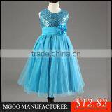 MGOO 2016 New Years Baby Girls Sequin Dresses Bow Waist Elegant Dress Cheap Price Manufacuturer MGT028-1