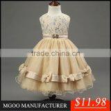 MGOO New Arrival Stock Cheap Champage Girl Party Dress Ball Gown Kids Vintage Ball Pageant Dress MGT026