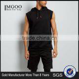 Black Sleeveless Running Hoodie Single Pocket Front Soft Jersey Fabric Fashion Men Tops Custom Made