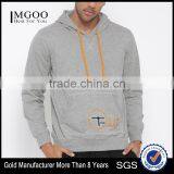 Grey Melange Hooded Sweatshirt For Man Long Sleeves With Elbow Patches Sweaters Kangaroo Front Pocket Ribbed Hem Hoody Custom