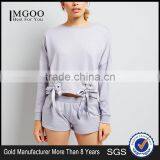 Lilac Lace Up Lounge Sweatshirt Drop Shoulder Side Eyelet With Short Pants Cuffed Hem Soft Jesery Sweater