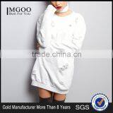 Women Oversized Longline Plain White Ripped Sweater Dress Distressed Sweatshirt Blank Pullover Drop Shoulder
