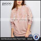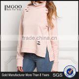 MGOO Customized Pink Distressd Hoodies For Ladies 100 Cotton Terry Tops Turtle Neck Long Sleeves Sweatshirts