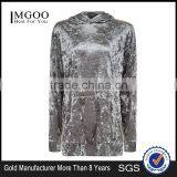 Women Longline Oversized Velvet Hoodie Grey Long Sleeve Pullover Front Pocket Plain Boyfriend Velvet Hoodies