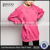 MGOO Custom Design Women Oversized Longline Plain Bright Pink Ripped Sweater Distressed Sweatshirt With Private Label