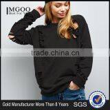 Plain Black Cut Out Sweater Women Blank Ripped Sweatshirt Oversized Long Sleeve Pullover