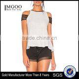 MGOO Hot Sale Women Sportswear Mesh Tank Top Women Contrast Mesh Sport Top With Shoulder Cuffs