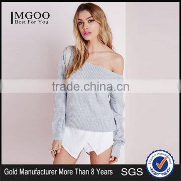 Custom Design Women Oversized Knitwear Plain Longline Sweater For Winter Off Shoulder Knitted Jumper Grey